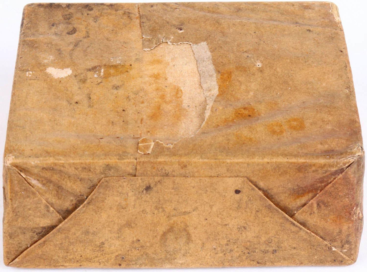 Sharps Rifle Manuf'g Co., 52/100 Caliber, For Sharps' Improved Rifle, FULL & SEALED 2pc. Box wrapped in a buff & black paper package, box is solid with very good color, age soiling, minor chipping & tearing to outer packaging, very minor corner wear, edges are mostly crisp, outer packaging is 99% intact. Grade: Excellent + - Value: 300 to 900