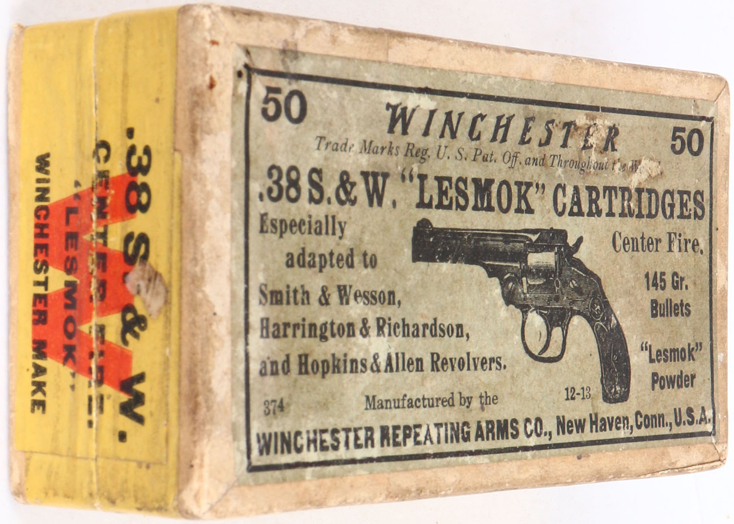| Winchester, .38 S&W Lesmok Cartridges, Full, 2pc. Buff box with...