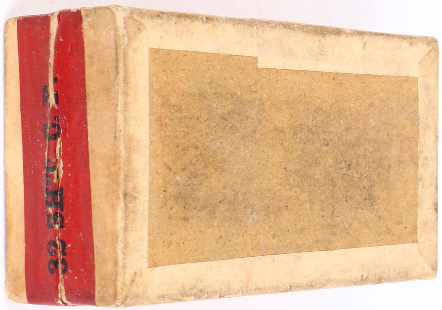 Winchester, Metallic Cartridges, .32 Short Center Fire, Full, 2pc. Buff box with green top & red side sealing labels, box is solid with very good color, some age soiling & color fading to top, very minor corner wear, edges are mostly crisp, labels are intact, ammo is very good to excellent. Grade: Excellent + - Value: 50 to 150
