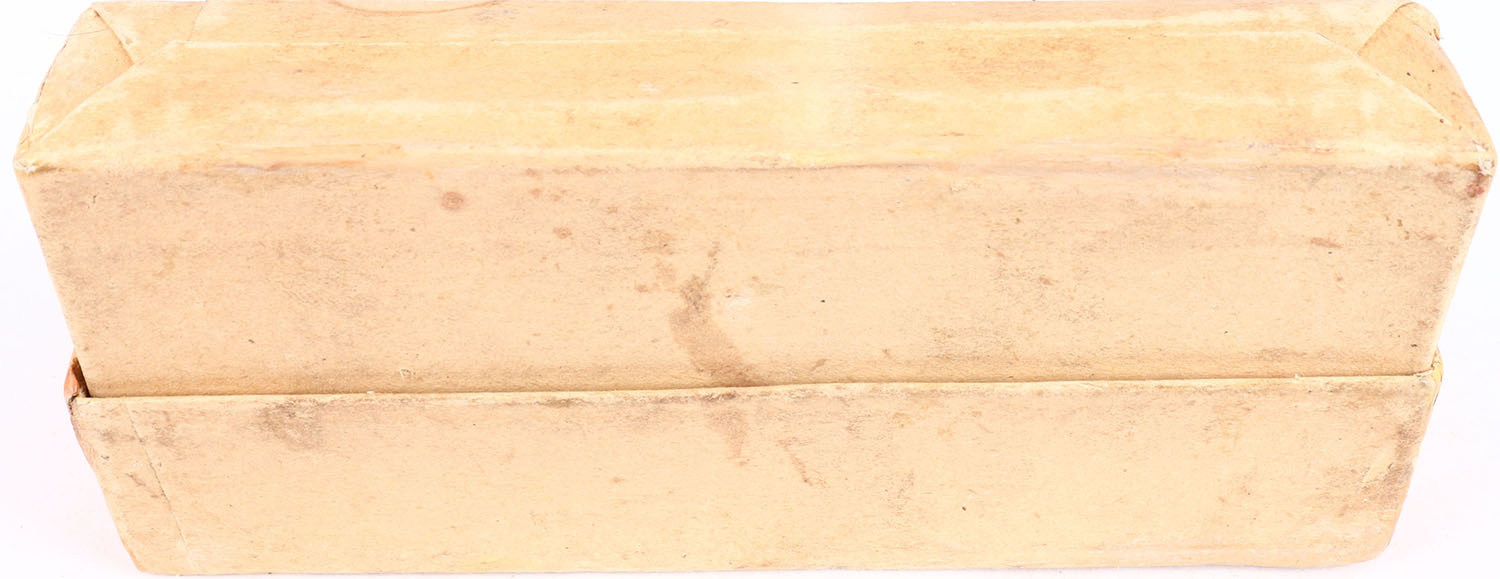 Winchester, .40-65 Winchester, Smokeless, 260 Gr, Soft Point Bullets, FULL & SEALED, 2pc. Buff box with orange labels, box is solid with excellent color, some age soiling, minor staining to front & back, minor edge & corner wear, labels are intact. Grade: Excellent + - Value: 150 to 300