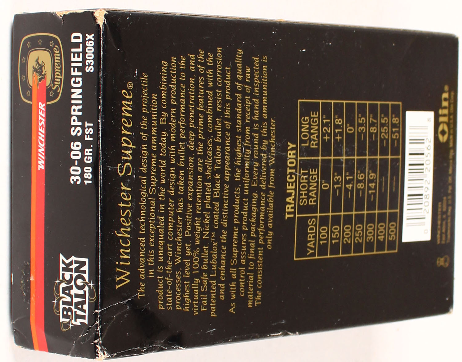Winchester, Supreme Black Talon, 30-06 Springfield, 180 Grain FST, Full, 1pc., Multi-colored box, box is solid with great color, Ammo is excellent. Grade: Excellent ++ - Value: 20 to 80