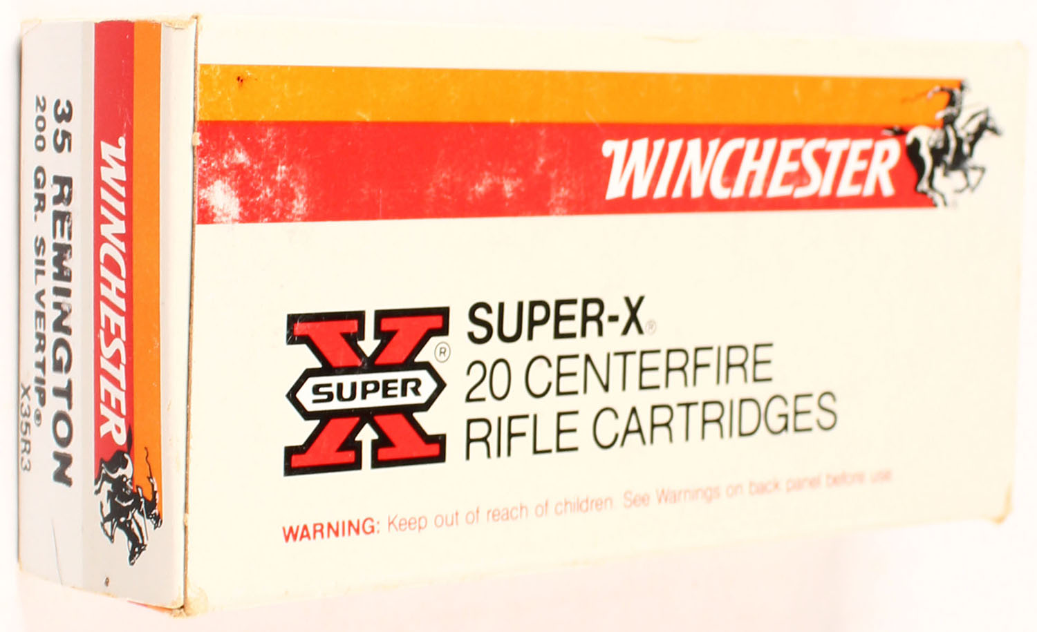 Winchester, Super-X, 35 Remington, 200 Grain Silvertip, Full, 1pc., Multi-colored box, box is solid with great color, Ammo is excellent. Grade: Excellent ++ - Value: 20 to 80
