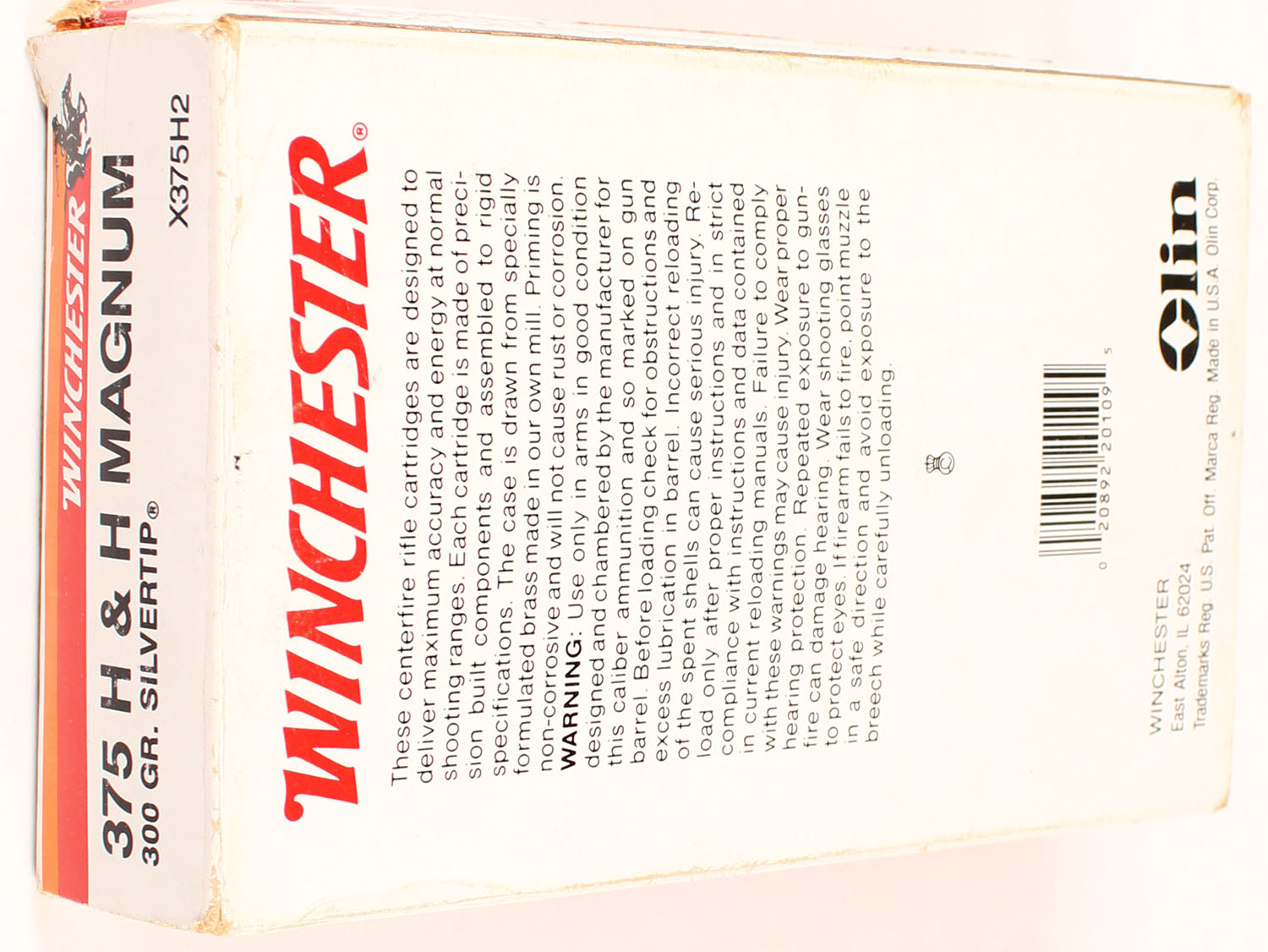 | Winchester, Super-X, 375 H&H Magnum, 300 Grain Silvertip, Full ...