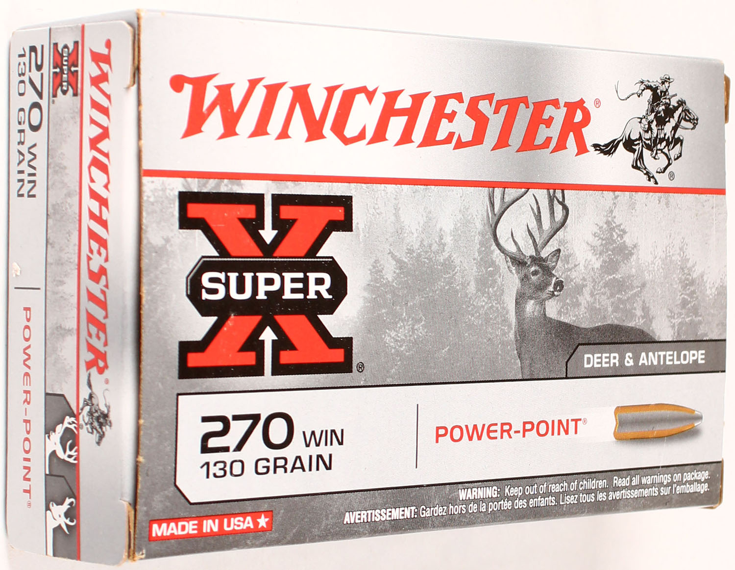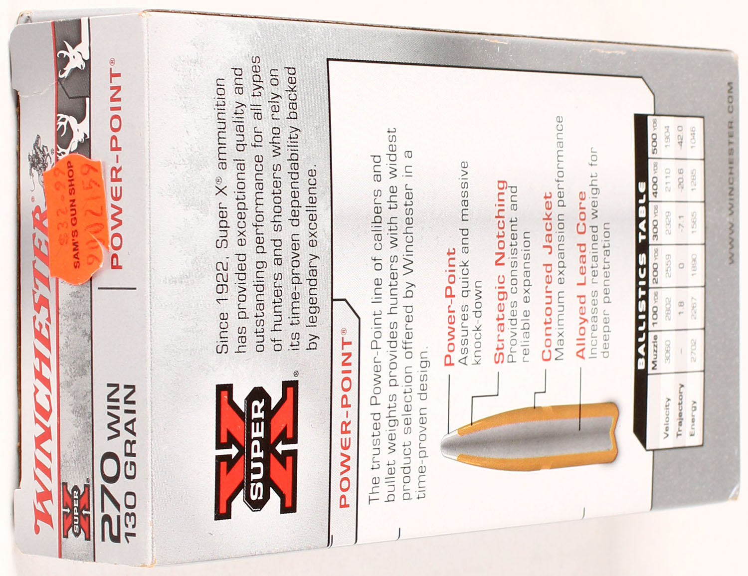 Winchester, Super-X, 270 Win, 130 Grain Power-Point, Full, 1pc., Multi-colored box, box is solid with great color, Ammo is excellent. Grade: Excellent + - Value: 20 to 80