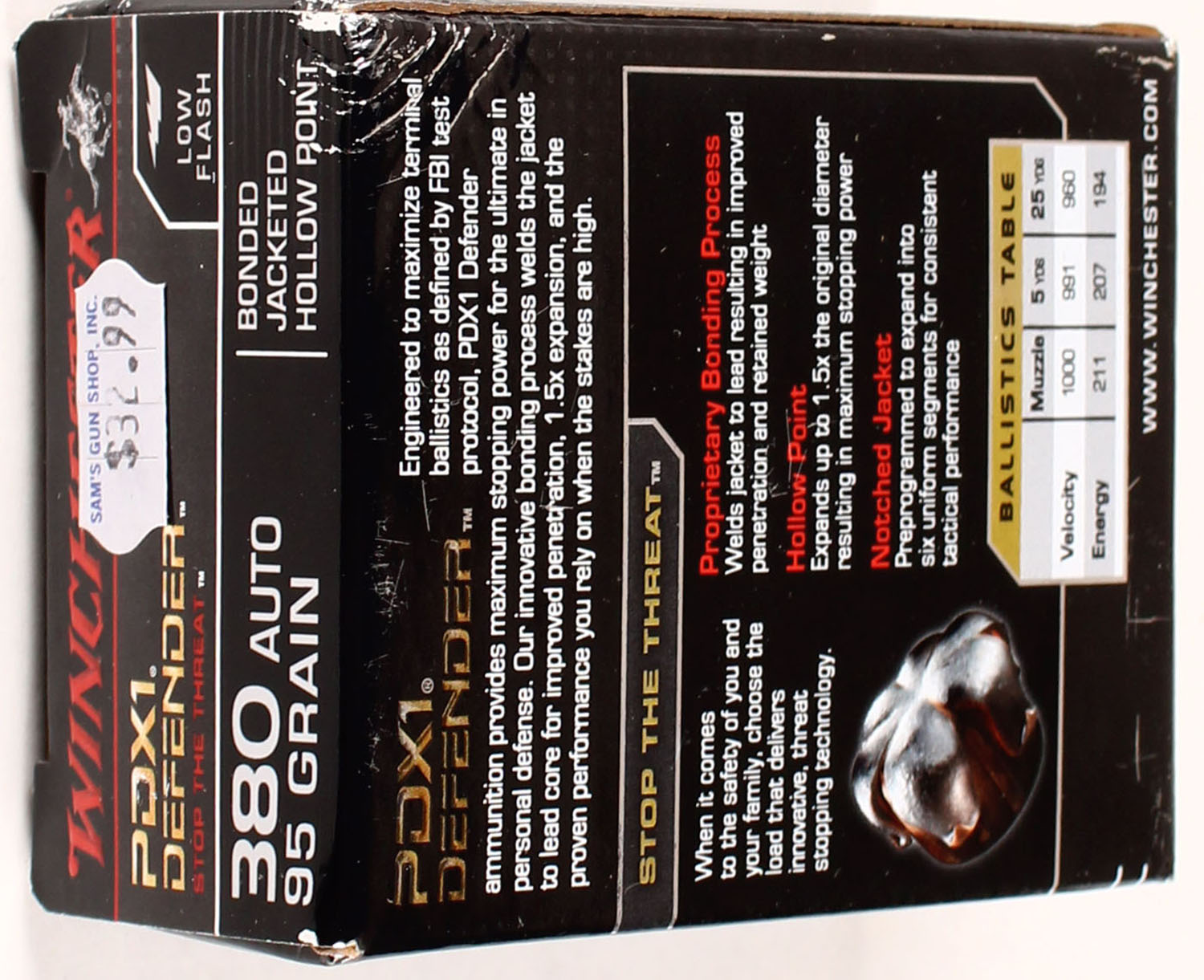 Winchester Elite, PDX1 Defender, 380 Auto, 95 Grain Bonded Jacketed HP, Full, 1pc., Multi-colored box, box is solid with great color, Ammo is excellent. Grade: Excellent + - Value: 20 to 80