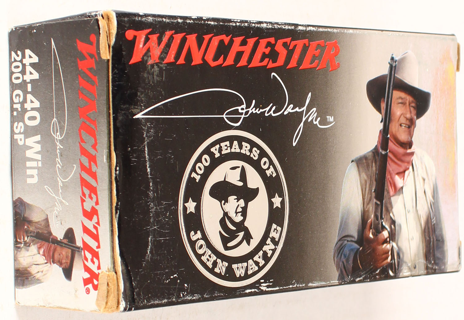 Winchester, John Wayne, 44-40 Win, 200 Grain SP, Full, 1pc., Multi-colored box, box is solid but has light shelf wear with great color, Ammo is excellent. Grade: Excellent + - Value: 20 to 100