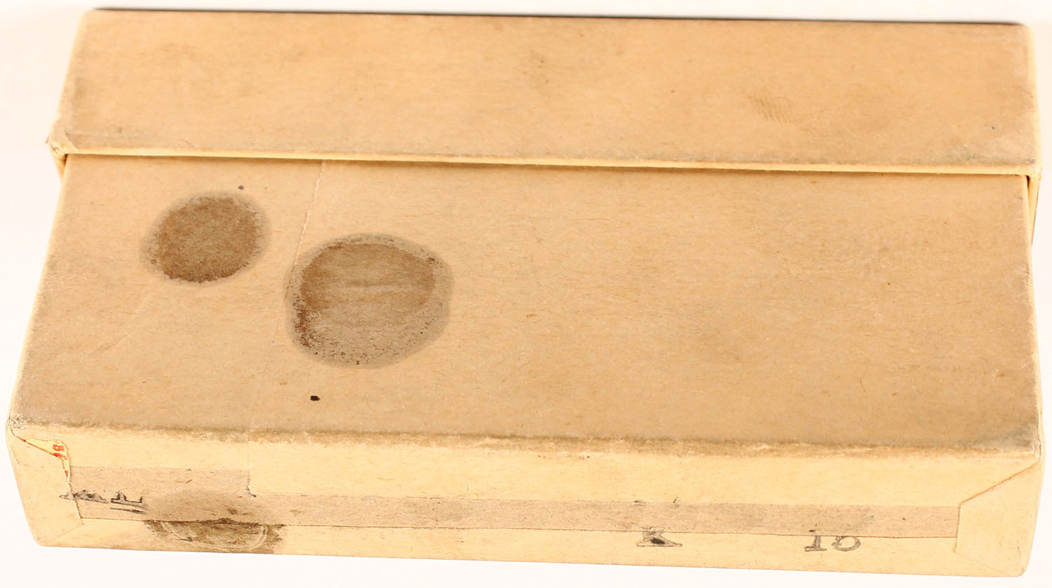 U.S. Cart. Co., 6.5mm Mannlicher Schoenauer, soft point bullets, Smokeless, 2pc, FULL & SEALED, buff box & label with red print, box is solid with stains, & light wear. Grade: Excellent + - Value: 10 to 40