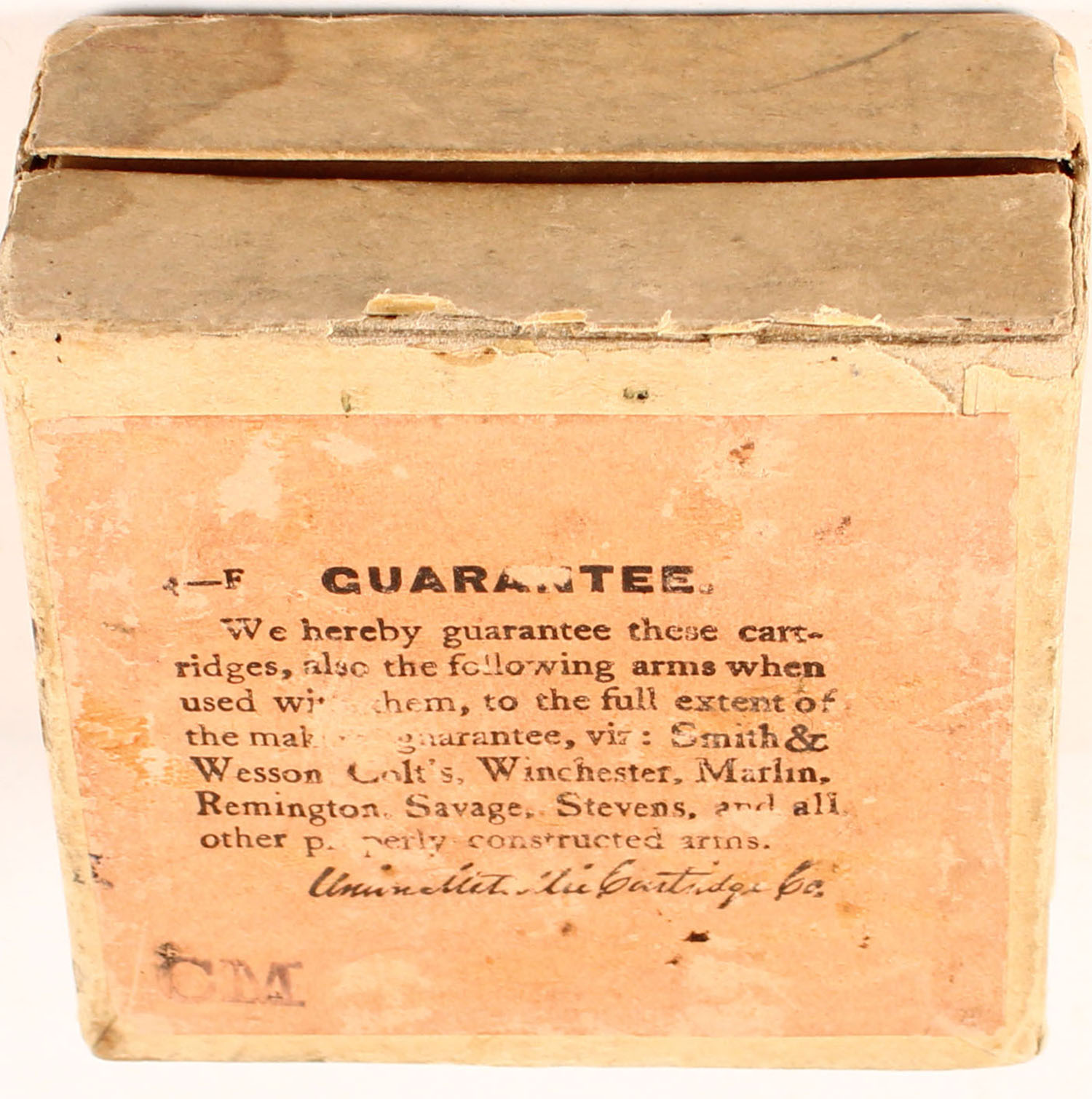 UMC, .50 Rem Navy Pistol, No. 8 SHOT, Full, 2pc. tan box with green top & no side sealing labels, box has a couple small seam splits and scuffing, ammo is good. Grade: Very Good - Value: 100 to 500