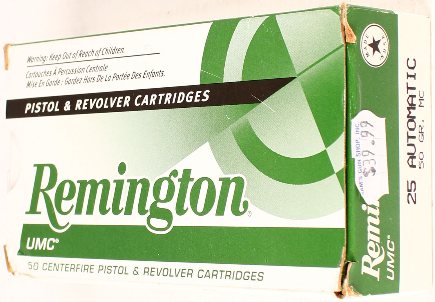 Remington .25 Auto, 50 Gr. MC, 1pc, Full. Grade: MINT - Value: 10 to 40