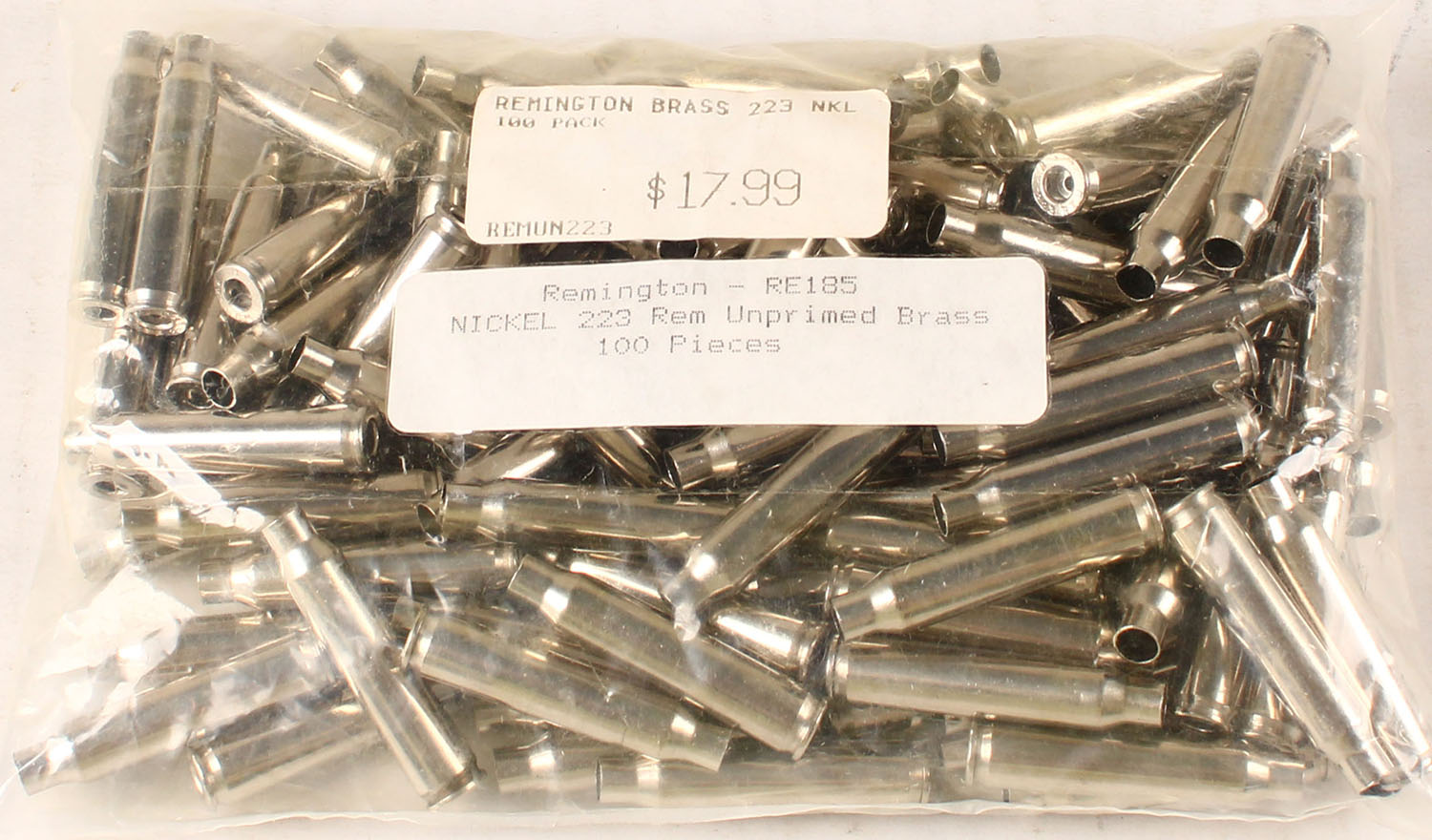 Lot of 100 nickeled unprimed cases marked H/S: REM 223. Grade: Excellent - Value: 10 to 60