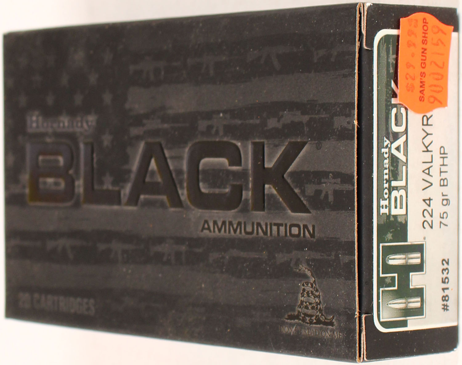 Hornady, Black Ammunition, 224 Valkyrie, 75 Grain BTHP, Full, 1pc. multi-colored box, box is solid with excellent color, Ammo is excellent. Grade: Excellent ++ - Value: 20 to 80
