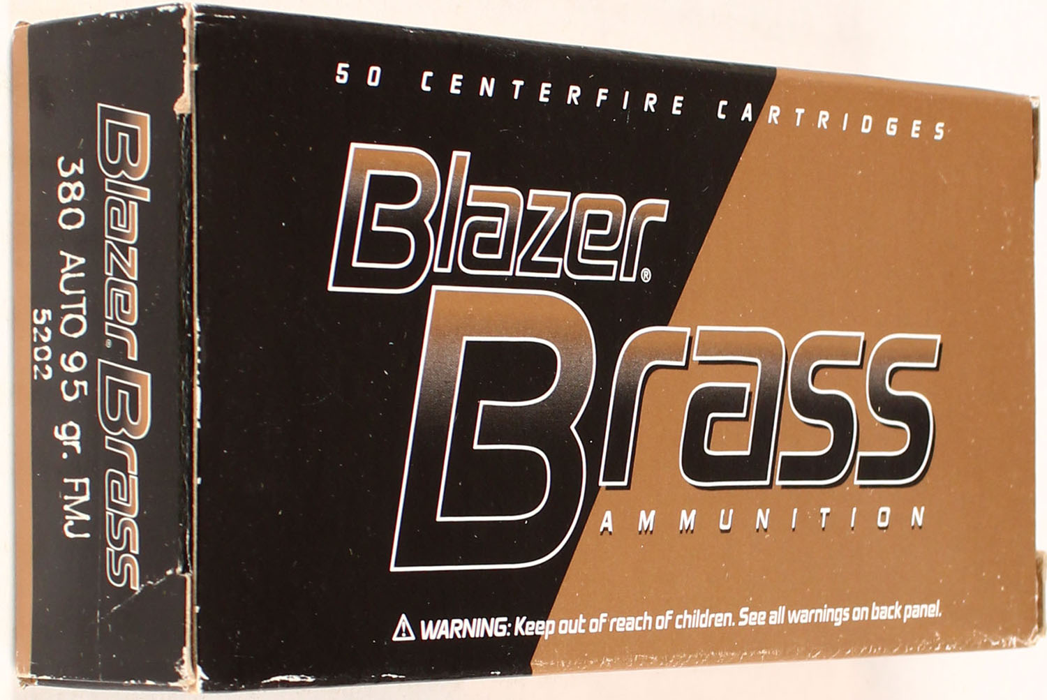 CCI, Blazer Brass, 380 Auto, 95 Grain FMJ, Full, 1pc. multi-colored box, box is solid, with excellent color, Ammo is excellent. Grade: Excellent ++ - Value: 20 to 80