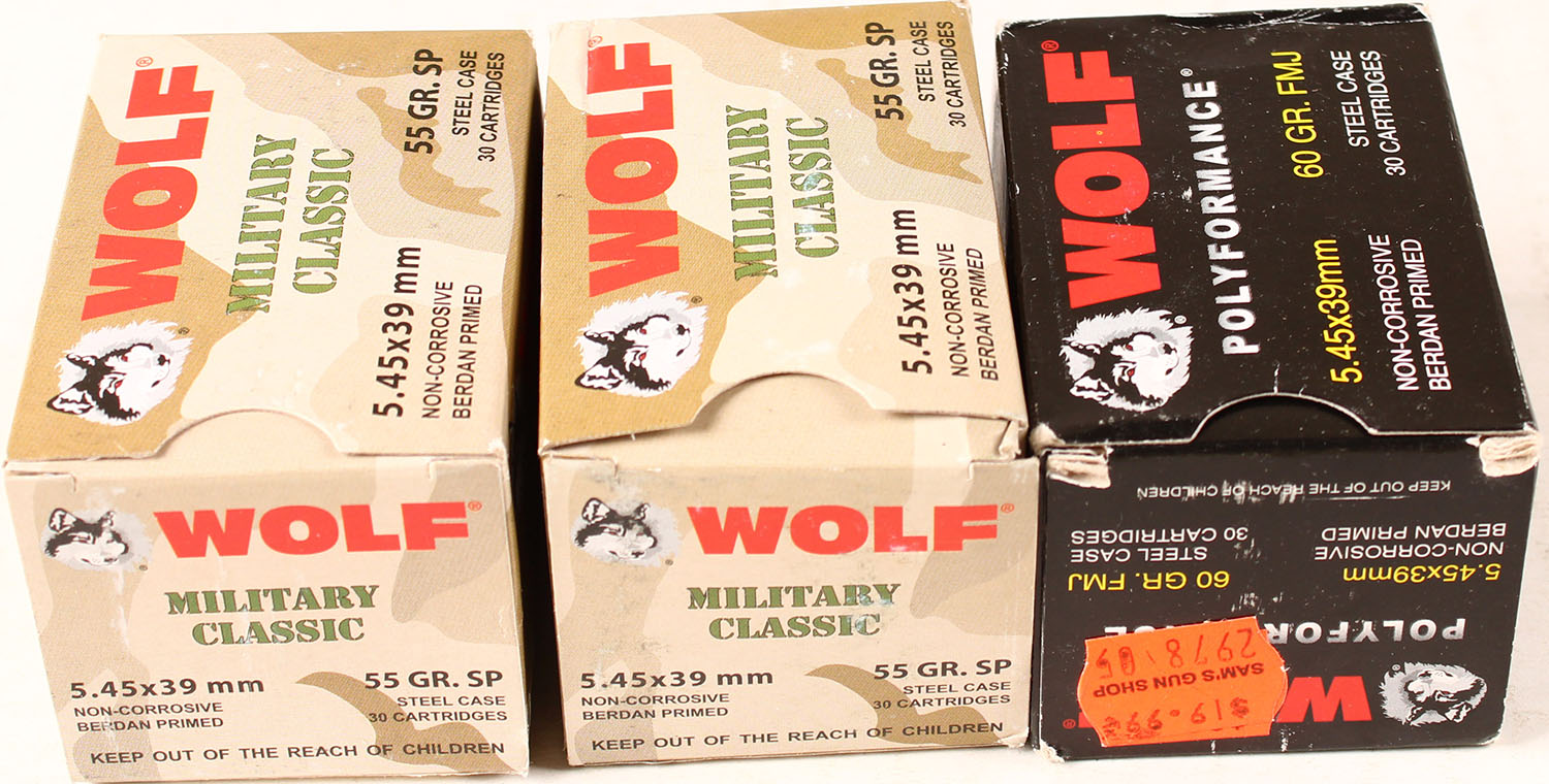 | Wolf, Lot of (3), 5.45x39mm, 60 Grain FMJ/55 Grain SP, FULL & S...