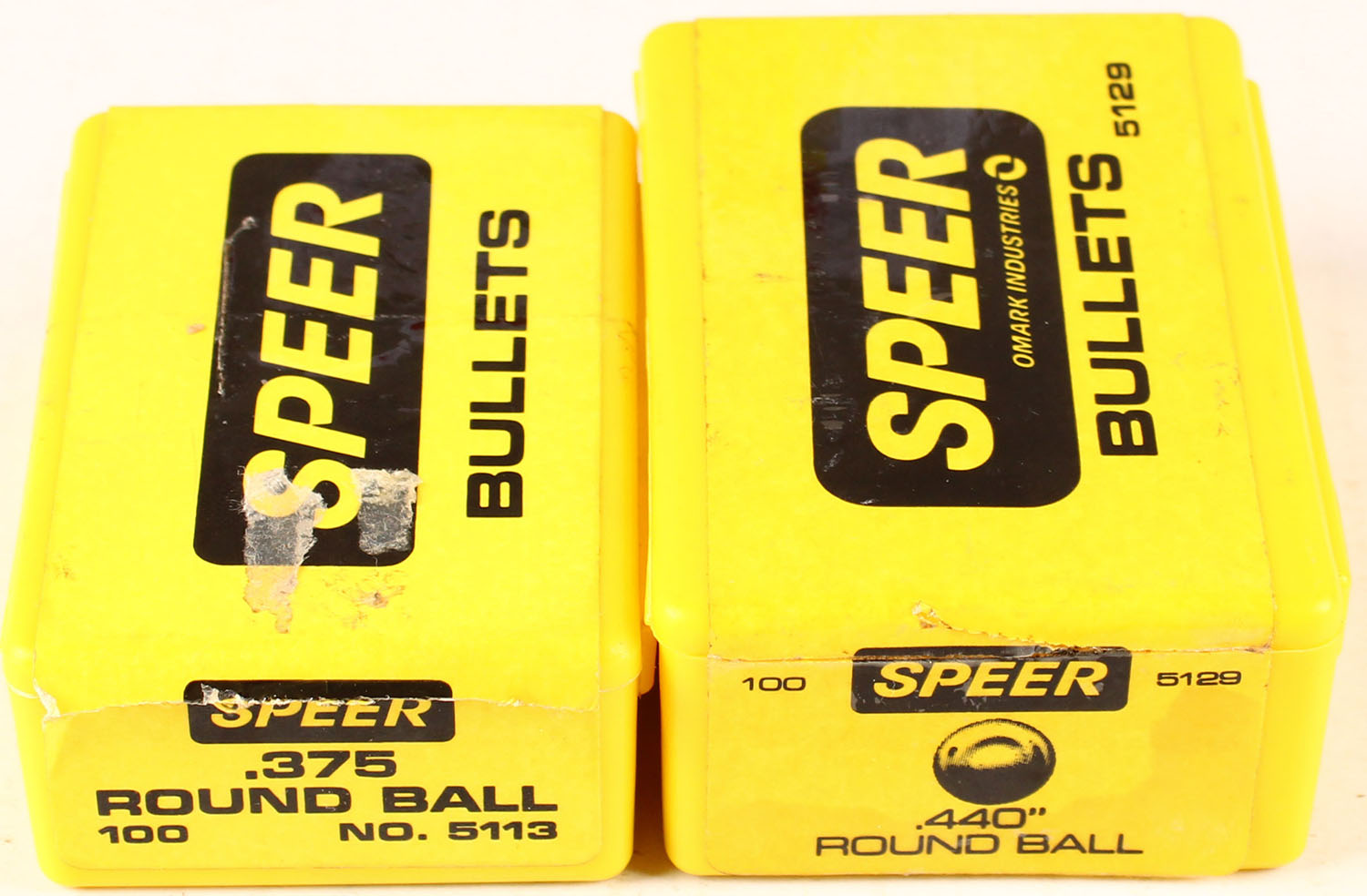 Speer, caliber 375/440, Unknown Grain Round Ball, Partial, 1pc., multi-colored box, box is solid with very nice colors, Bullets are excellent. Grade: Excellent - Value: 10 to 100