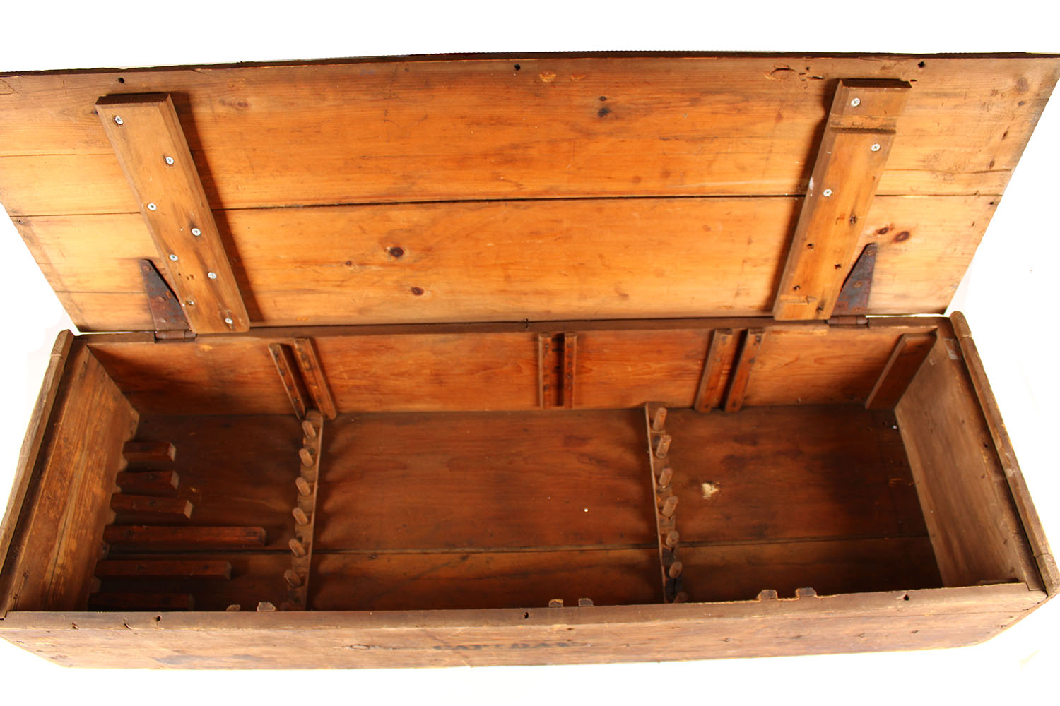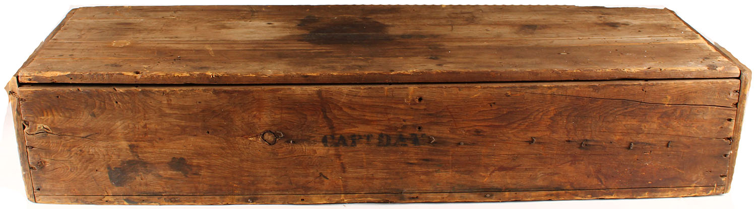 Being sold with the Electric Rifle in this lot is the wood crate that S.A. Day used to store, carry & travel with his target rifles & accessories to the various competitions & particularly The Creedmoor. The crate is 55 1/2'' X 17 1/2'' X 11''. It is set up with dowels & slat dividers on the bottom of the crate which held his various rifles. On the front of the crate is stenciled ''CAPTAIN DAY''. This is the crate which held the five rifles in this auction, which S.A. Day pack the last time.