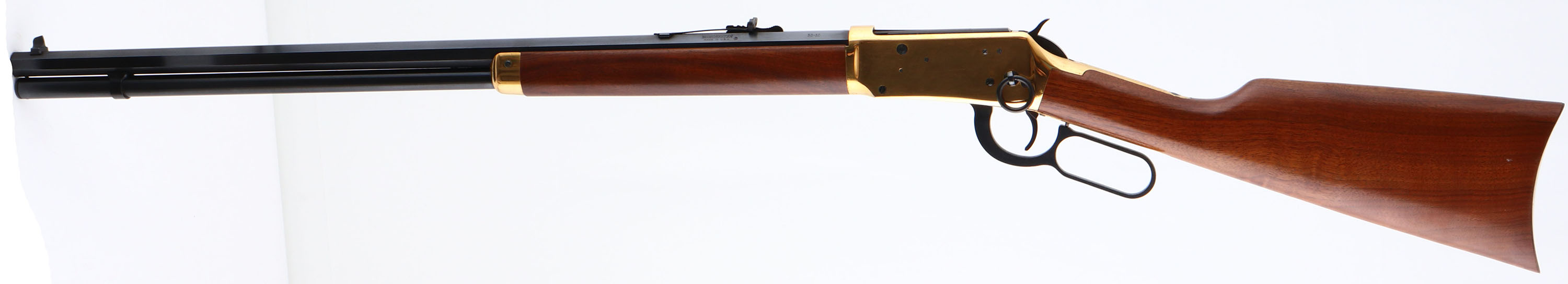 BOXED, Winchester Centennial 66', CAL: 30-30, MFG: 1966, SN: 91665, Lever Action Rifle, 26'' Octagon barrel, Full mag. The original straight grip wood stocks are excellent, with excellent factory finish. The metal blue finish rates 99% overall. The receiver, forend cap & buttplate are high luster brass tone, with tiny visible surface lines. Bore is near mint. Barrel holds an adjustable rear & blade front sight. Buttstock holds a smooth brass tone crescent metal buttplate. Comes with the original hanging tag in the original box, which is worn on the edges & ends. FFL or C&R Req. - Value: 600 to 1200