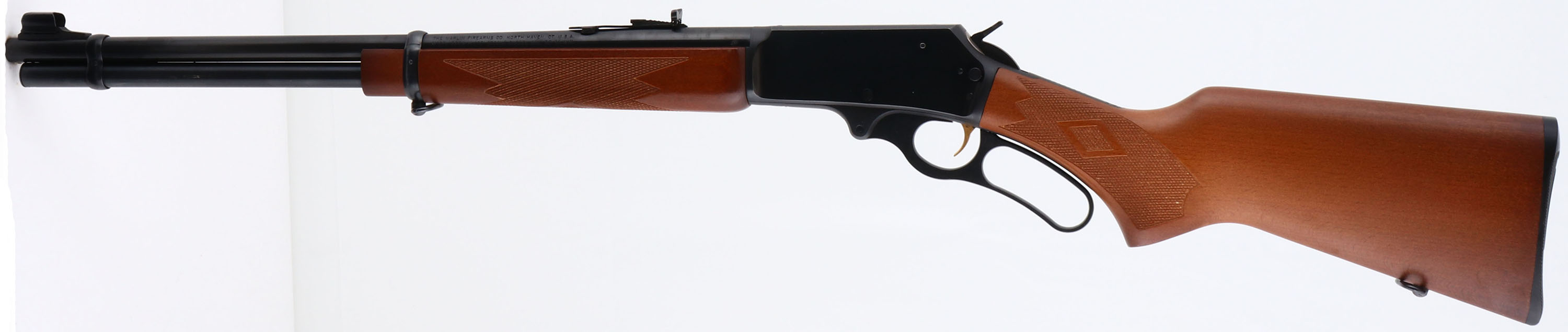 Marlin, Model 336W, CAL: 30-30, MFG: Modern, SN: 93031297, Lever Action Rifle, 20'' barrel, Full Mag. The checkered & flat pistol grip wood stocks are excellent & minty, with original finish. The metal blue finish rates 99% overall. Bore is excellent, with strong rifling. The barrel carries the original adjustable rear & ramp elevated hooded front sights. Receiver is factory tapped & drilled for scope mounts. Stock carries a Marlin checkered plastic buttplate. Factory sling loops present. Gold tone trigger. An excellent lever action hunting rifle. FFL Req. - Value: 400 to 800