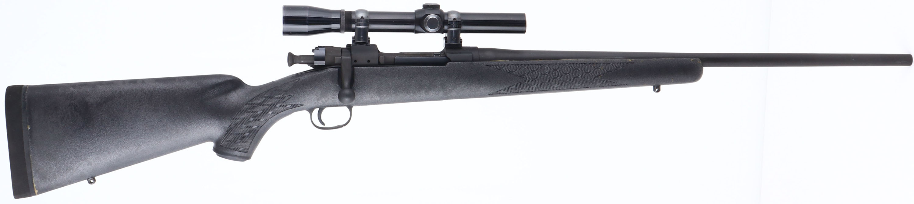 Custom Rifle, Remington, Model 03-A3, CAL: 30-06, MFG: 1942 (Receiver), SN: 4046490, Bolt Action Rifle, 22'' barrel. The Ram-Line checkered & capped pistol grip synthetic stock is excellent. There are handling marks, with remnants of bedding compound in the crevices along the barrel. The military style finish is very good, with minor blemishes & scuffs. Bore is very good & bright, with consistent light spotting between the rifling. The receiver holds a Lyman All-American 3x scope. No open sight provisions. Solid black recoil pad. Sling studs. FFL or C&R Req. - Value: 300 to 600