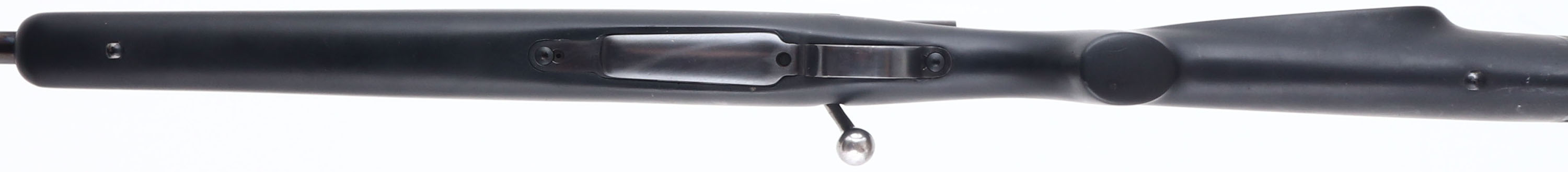 Custom Rifle, Fabrique Nationale d'Armes De Guerre, Columbian Military Mauser action, CAL: 6mm, MFG: N/A, SN: 14834, Bolt Action Rifle, 21'' barrel. The flat pistol grip & raised cheek synthetic stock is excellent, but with several handling marks, scrapes & scuffs. The metal blue finish rates 90%, toning a bit plum & with some spotty areas of wear. Bore is excellent. The receiver carries a Leupold M8-4x scope, while the barrel holds a single leaf flip-up rear sight & ramp elevated blade front sight. Ventilated recoil pad. Sling studs present. A very nice custom built hunting rifle. FFL or C&R Req. - Value: 400 to 800