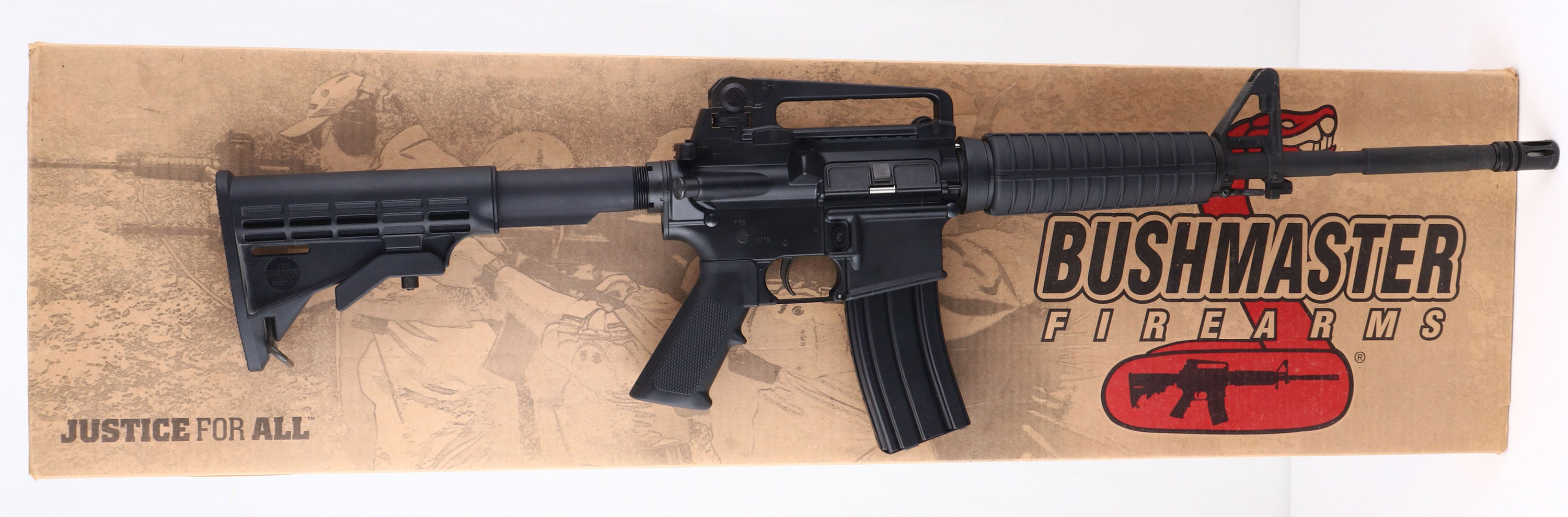 NEW, BOXED, Bushmaster, Model XM15-E2S, CAL: 5.56, MFG: Modern, SN: ARB36620, Semi Auto Rifle, 17 1/2'' barrel. The 6pt adjustable composite stock, checkered grip & grooved forend are excellent. The factory matte black finish is excellent, rating 99%, with minor storage & handling marks. Bore is excellent. Factory iron sights. Sling studs present. Comes in original box, with paperwork, black cloth sling & 30rd mag. NOS. FFL Req. - Value: 700 to 1300