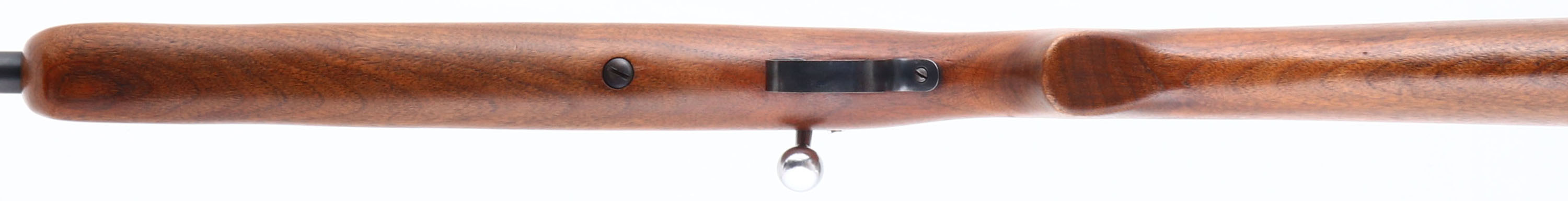 RARE Winchester, Model 47, .22 S. L. LR. Cal., MFG. 1948-54 SN: NSN, Bolt Action Rifle, 25'' barrel, The original flat pistol grip wood stock is excellent & solid, with the slanted back forend tip. There are very few tiny contusions & scuffs to the original finish. The factory metal blue finish on barrel & trigger guard remains at 95%, with loss due to a couple areas of depth thinning rather than coverage loss. Nickel tone bolt handle, bolt & trigger. The bore is excellent. Mounted with adjustable rear sight & standard front sight. Winchester plastic buttplate. Low production model at approx. 43,000 mfg. These are fairly rare rifles & especially when in this high original condition. FFL or C&R Req. - Value: 500 to 1000