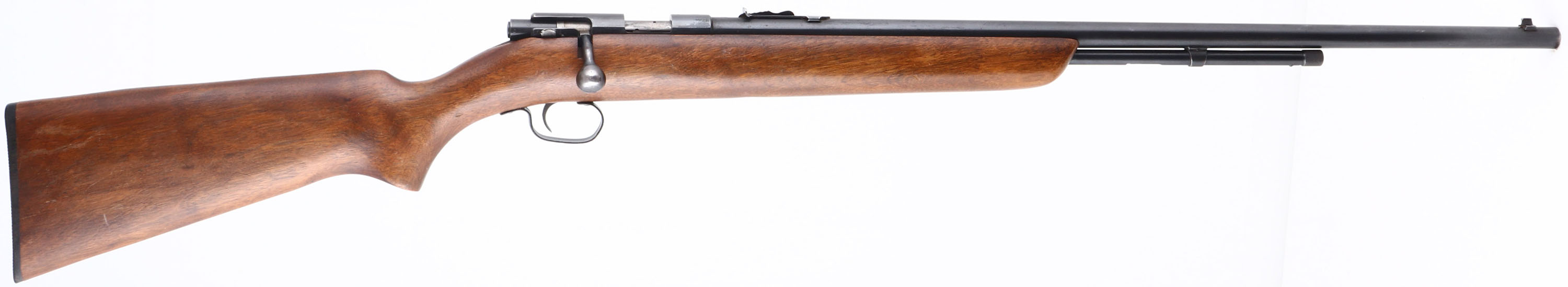 Winchester, Model 72, CAL: 22 Short, MFG: 1938-59, SN: NSN, Bolt Action Rifle, 25'' barrel. The original, flat pistol grip wood stock is very good, with some light scrapes or dings to the original finish. The metal blue finish rates 95% overall. Bore is excellent. The barrel holds an adjustable rear sight & blade front sight. Stock carries a Winchester plastic buttplate. FFL or C&R Req. - Value: 150 to 300