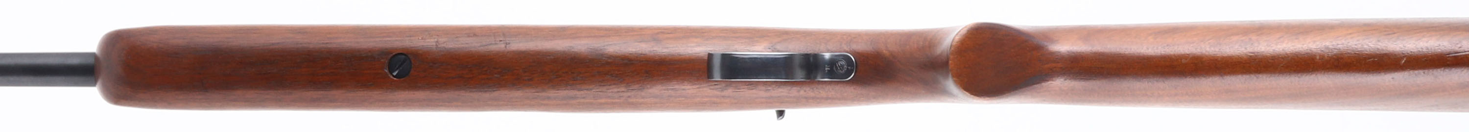 Winchester, Model 74, Marked .22 LONG RIFLE, MFG. 1948, SN: 185843A, Semi-Auto Rifle, 22'' Tapered round barrel, Although some 400,000 plus model 74 rifles were produced, it is a rifle that is seldom encountered & little is know. Cartridges load through the buttstock once the mag follower is removed through the buttplate. High condition factory original examples such as this rifle do command a premium among collectors. The original American straight grain walnut & pistol grip stock is excellent & carries the factory finish. There are very few finish level contusions or scuffs. Factory metal blue finish is 95% overall. Bore is excellent. Fitted with an adjustable rear sight & factory front sight. The unusual receiver mounted safety functions by sliding it side to side within a dovetail channel. An excellent & original condition, Winchester semi-auto .22. FFL or C&R Req - Value: 500 to 1000