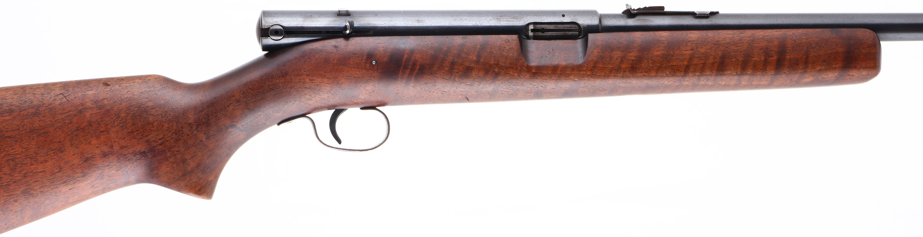 Winchester, Model 74, CAL: 22 LR, MFG: 1941, SN: 93087, Semi Auto Rifle, 24'' Tapered barrel. The original, flat pistol grip wood stock is excellent, with minor scrapes & handling marks to what appears to be the original thinning finish. The metal blue finish rates 85% overall. Finish on trigger guard has toned to a brown patina. Bore is excellent. The barrel holds an adjustable rear sight & blade front sight. Stock carries a checkered metal buttplate & internal mag tube. Rifle is loaded through a slot on the right hand side of the stock. An unusual Winchester rifle. FFL or C&R Req. - Value: 150 to 350