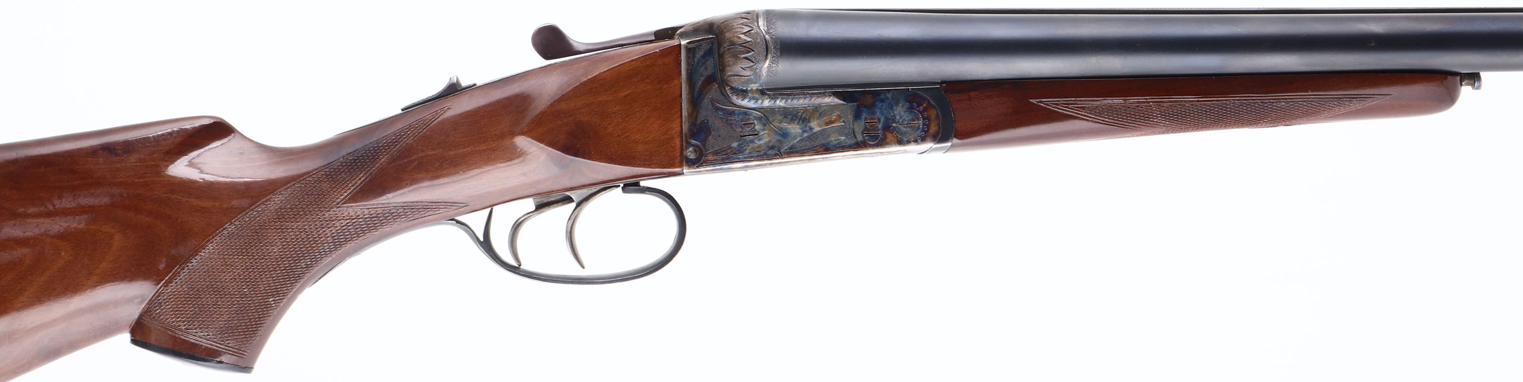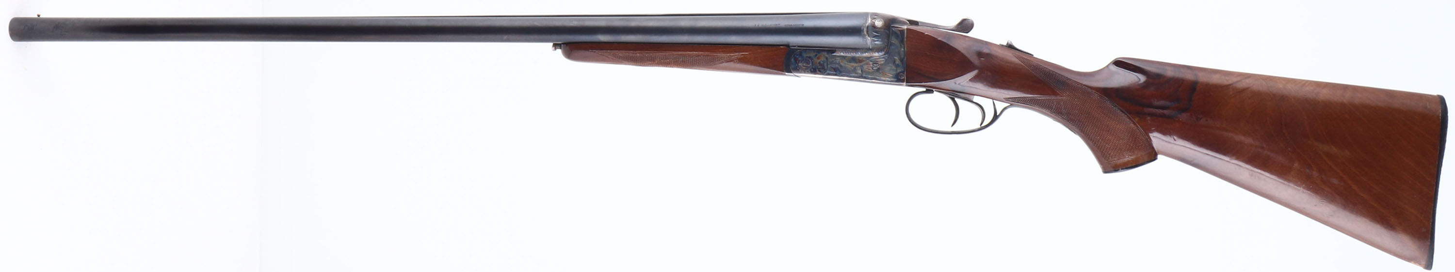 Gorosabel, Sidelock, CAL: 12GA, MFG: 1970, SN: PG26320, Break Action SxS Shotgun, Choke: Full/Mod, 27 3/4'' barrels. The checkered & capped pistol grip wood stocks are excellent. There are contusions, scrapes & dings to the high gloss finish. The restored metal blue finish on the barrel rates 95%. The receiver, barrel ends, break lever & trigger guard are beautifully hand engraved, with ornamental patterns & birds on either side. The receiver is case-hardened, retaining full case-colors. Bores are excellent. The solid, matted rib holds a front bead. Weaved pattern plastic buttplate. Double triggers. A nicely restored Spanish shotgun. FFL or C&R Req. - Value: 300 to 700