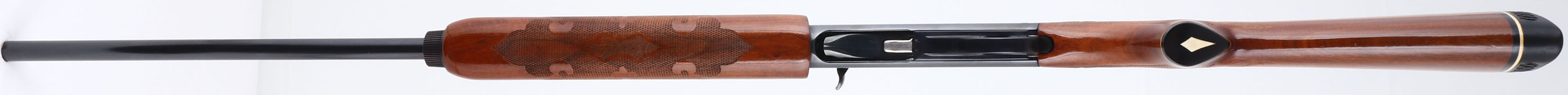 Remington, Model 1100 MAGNUM, CAL: 20 GA, MFG: 1980's, SN: L182805N, Semi Auto Shotgun, Choke: Full, 3'', 28'' Ventilated rib barrel. The original checkered & capped pistol grip wood stocks are excellent, displaying few light handling marks to the original finish. The metal blue finish rates 98% overall, with a couple minor blemishes on the top of rib. Bore is excellent & bright. The rib holds a single front bead. Buttstock carries a Remington ventilated recoil pad. A high condition Magnum shotgun in a popular gauge for upland birds. FFL Req. - Value: 600 to 1200