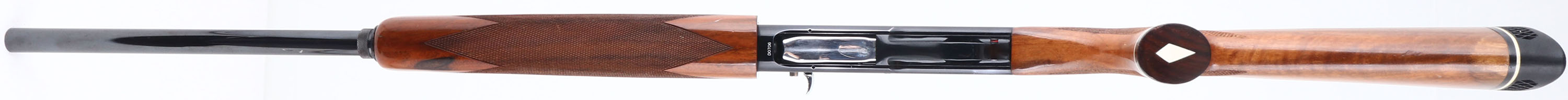 Charles Daly, Model Superior, CAL: 12 GA, MFG: Mid 1960's-73, SN: D0706, Semi-Auto Shotgun. 2 3/4'' IMP CYL, 26'' Ventilated rib barrel. These shotguns were produced in the Miroku Japan plant, which is the same plant that was producing Browning shotguns & rifles. The original checkered & capped pistol grip wood stocks are excellent. They display very few tiny contusions to the original finish. The original metal blue finish rates 95% on barrel, 90% on receiver, with the sides of the receiver being silver tone, with laser engraved bird hunting scenes. Bore is very good. The barrel holds a mid & front beads. Buttstock carries a Ventilated Pachmayr recoil pad. LOP: 14 1/4'' over pad. FFL or C&R Req. - Value: 400 to 800