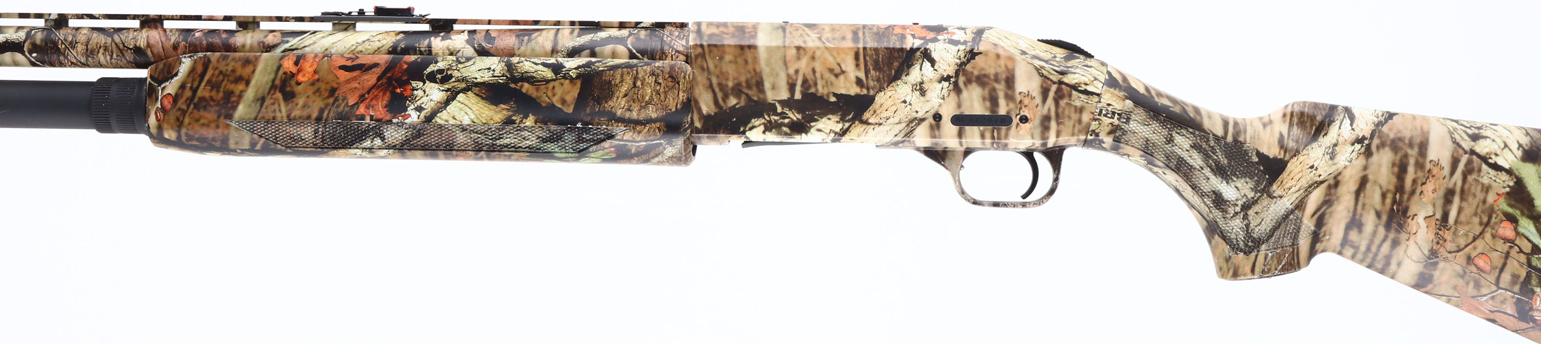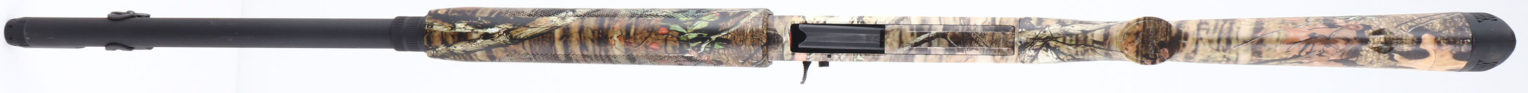 Mossberg, 930 Turkey, CAL: 12 GA, MFG: Modern, SN: AF172970, Pump Action Shotgun, 2 3/4'' & 3'', 24'' Ventilated barrel. 27'' with Accu-Choke twist choke system. The checkered & flat pistol grip synthetic stocks are excellent, with full coverage of the Mossy Oak Break-up Infinity camo pattern. The camo finish on the barrel & receiver is excellent, displaying very minor scuffs. Bore is excellent. The ventilated rib holds a dual red rod mid-rib sight & a front sight provision missing the rod. Has a Choate Tool Co. magazine tube added for extra capacity. Buttstock carries a Mossberg ventilated recoil pad. Integral sling provisions. The 930 is a very reliable, nearly indestructible pump shotgun that's ideal for all-round rugged use. FFL Req. - Value: 300 to 600