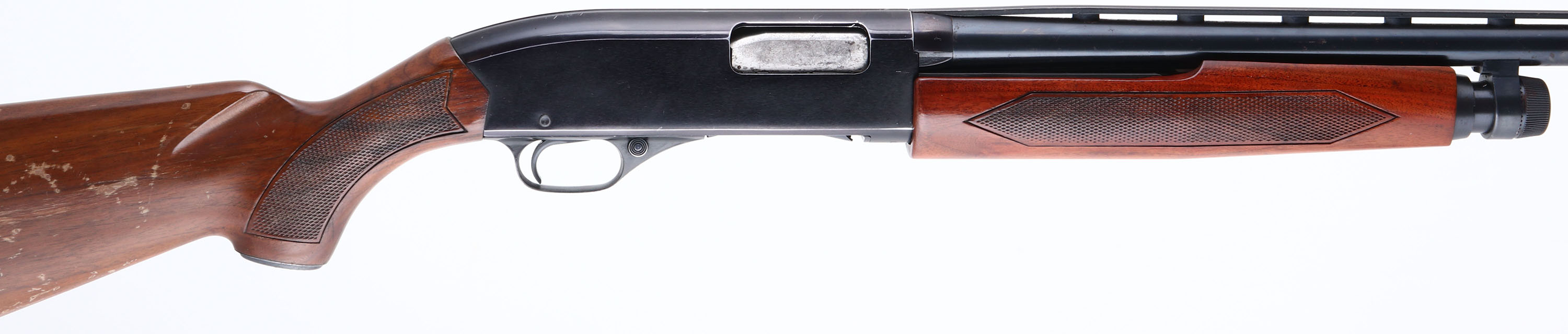 Winchester, Model 1200, CAL: 20 GA, MFG: 1964-82, SN: L1257637, Pump Action Shotgun, IMP CYL Winchester Screw-in Choke, 28'' Ventilated barrel. The Winchester Model 1200 was introduced in 1964 as a low-cost replacement for the venerable Model 12 & was just the second shotgun to utilize a rotary bolt, with four locking lugs secured within the barrel extension. It was Winchester's first shotgun to incorporate the company's patented WinChoke system, a quick change tube to allow the easy replacement of chokes. The original checkered & capped pistol grip wood stocks are excellent, however there are numerous contusions, scrapes & flaking to the original finish. The original metal blue/black finishes on the barrel & alloy receiver rate 80% overall, with spotty rust pitting on the barrel. Bore is excellent. Single front bead. Buttstock carries a Winchester buttplate. FFL Req. - Value: 250 to 500