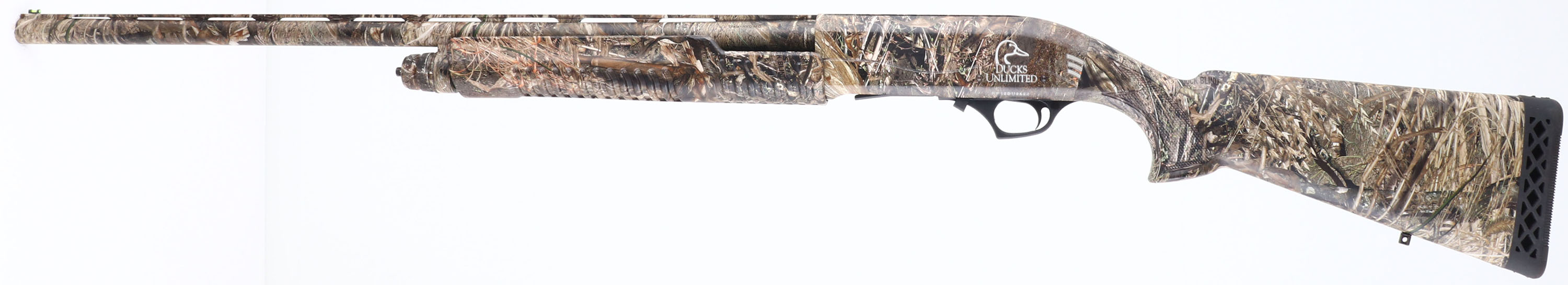 BOXED TriStar, Model Cobra, Ducks Unlimited CAL: 12 GA, MFG: Modern, SN: KP15DU0284, Pump Action Shotgun, Screw-in chokes, 28'' Ventilated barrel. The original flat pistol grip checkered & grooved forend synthetic stocks are excellent. The entire gun is covered in Mossy Oak Duck Blind camo pattern, which is excellent. The same camo finish on the barrel & receiver is excellent. The ventilated rib holds a green fiber-optic front sight. Buttstock carries a ventilated recoil pad. Integral sling provisions. Comes in its original box, with owners manual & choke tube case holding two extra chokes & tool. FFL Req. - Value: 300 to 500