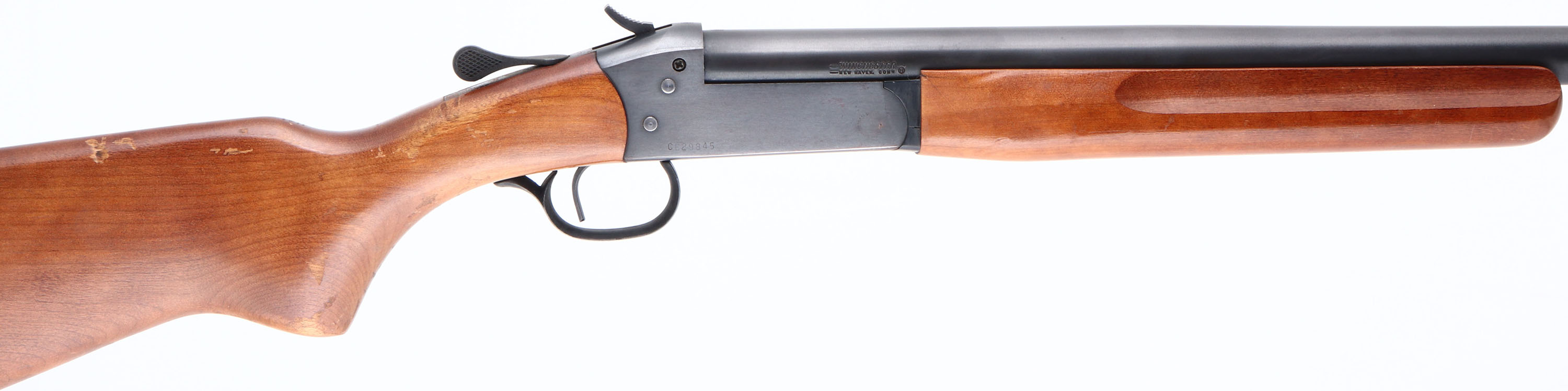 Winchester, Model 840, CAL: 20GA, MFG: 1967-79, SN: CE29845, Break Action Single Shot Shotgun, Choke: Full, 28'' barrel. The flat pistol grip wood stock & beavertail forend are excellent. There are contusions, minor scrapes & dings, with flaking finish near the handling points. The metal blue finish on the barrel rates 98% & the receiver rates 75%, with spotting toned to a brown patina. Bore is excellent & minty. The barrel holds a single front bead. Winchester checkered buttplate. FFL Req. - Value: 150 to 350