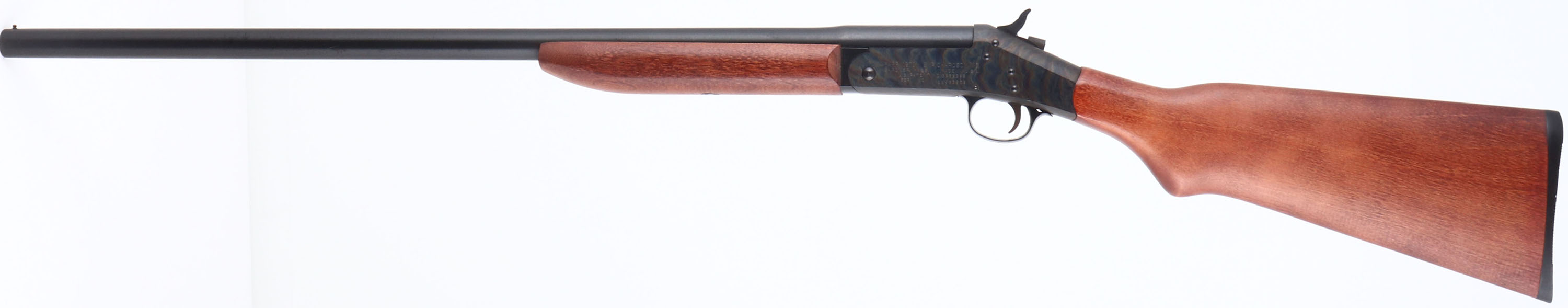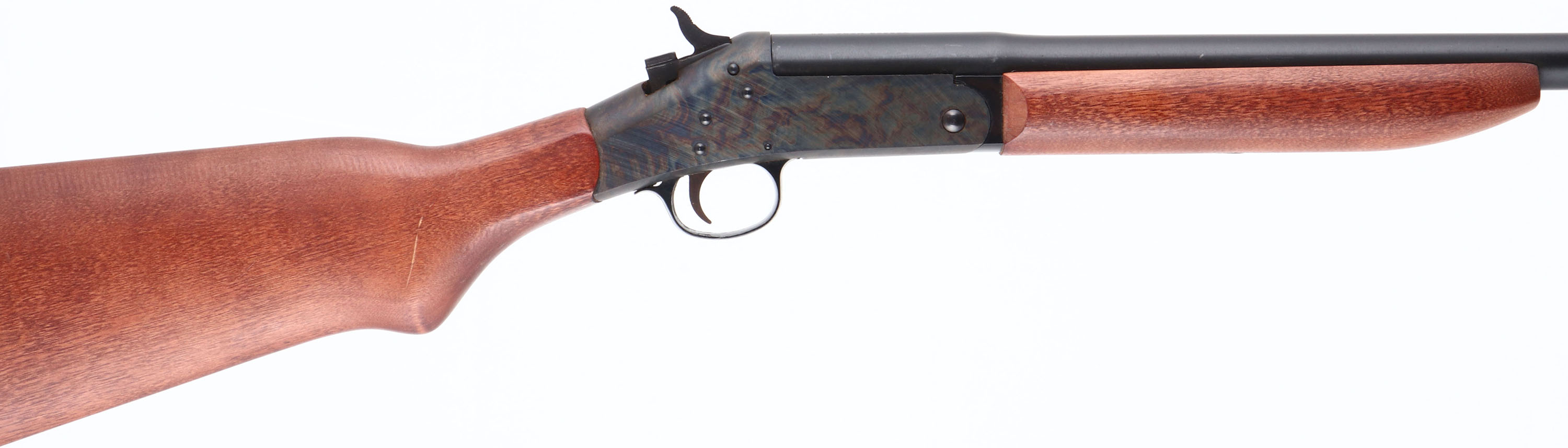 Harrington & Richardson, Topper Model 88, CAL: 12GA, MFG: 1981, SN: AX463989, Break Action Single Shot Shotgun, Choke: Full, 27 3/8'' barrel. The original round knob wood stock is excellent. There is only a couple minor handling marks. The metal blue finish on the barrel rates 98% & the receiver is case-hardened, retaining full case-colors. Bore is excellent, with intermittent roughness. The barrel holds a single front bead. H&R grooved plastic buttplate. FFL Req. - Value: 100 to 250