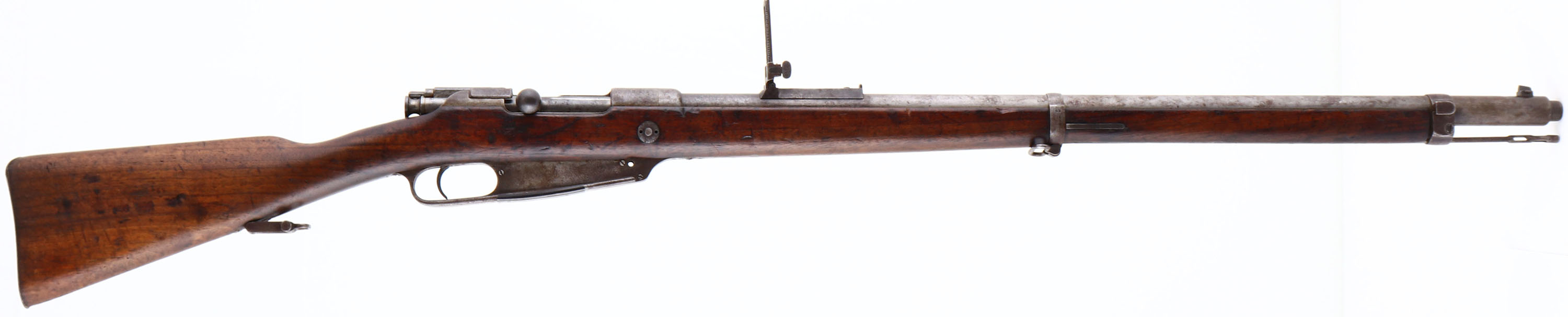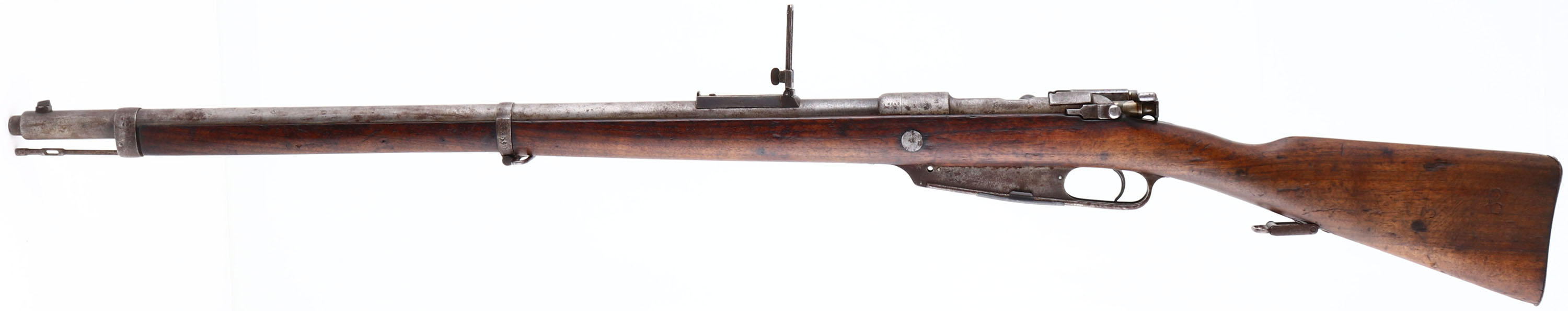 Danzig, Model: 88/05, Cal: 7.92x57mm, MFG: 1891, S/N: 9049Z, Bolt Action Rifle, 29 1/4'' Barrel. The straight wrist wooden stock is very good with scratches/dents & wear from use & age, one ''Y'' stamped into bottom of stock in front of magazine floorplate, faint cartouche on bottom of stock between trigger guard & rear sling swivel, ''3'' stamped into bottom of stock behind rear sling swivel, left side of stock stamped ''3'', three circles impressed to left side of stock, looks to be damage and not factory, two faint cartouches on right side of stock, metal is proud to wood at toe & right side of stock. Metal has toned to a even gun metal gray with brown patina & rust speckling, Receiver's were left in the white (not blued) from the factory, left side of receiver is marked with S/N, ''GEW.88'', ''S'', ''B'', ''D'', top of receiver is marked with, ''S'', Crown over ''DANZIG'', ''1891'' & proof marks, Left side of barrel is marked with S/N, bottom of magazine floorplate is marked ''J'', bolt has Turkish markings on it & S/N on bolt is in Turkish & appears to read ''008'' which makes it a S/N mismatched bolt, left side of rear sight base is marked, ''79'', left side of rear barrel band is marked with X'd out unit markings, left side of front barrel band is marked, ''76.R.4.174.'' which is a unit marking to where this rifle was issued to in the German military. Bore is very good, bright light roughness in spots. Barleycorn front sight, V-notch ladder rear sight that's marked in Turkish which reads ''5'' to ''20'' . Metal buttplate worn to a gun metal gray with spots of light rust. Bottom sling swivels, has cleaning rod. When these guns were updated to the 88/05 pattern they changed the chambers to the updated cartridge dimensions but did not change the barrel, the original round was smaller then the newer round which is what is found today, we recommend getting the bore checked & only hand loading ammo for these rifles with the proper bore dimensions, they are not know to blow up using the bigger sized bullet but will wear out the barrels considerably faster & is not recommended, & the action is not as strong as later designs & is not recommended to fire higher pressure loads through this rifle. Antique No FFL Req. - Value: 300 to 600