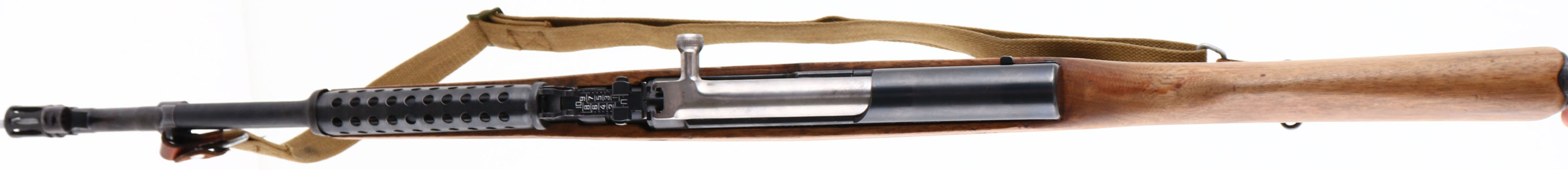 Chinese (Factory 26), Model: Type 56 SKS Paratrooper, Cal: 7.62x39mm, MFG: 1964, S/N: 9128686, Semi-Auto Rifle, 16 1/2'' Barrel, The Original Semi Pistol grip Wood stock is good with light dings, nicks & scratches, stock appears to have been lightly sanded, polymer pistol grip has been added and has extra steel ventilated handguard, S/N is marked on the right side of the stock, left side of stock is marked ''26'' near rear sling swivel & has Chinese lettering cartouche above the trigger, the original wooden handguard has been replaced with a metal ''cheese grater'' style of handguard. The Metal finish rates 90% Overall with spots of thinned bluing, Left side of receiver is marked with Factory 26 code, three Chinese characters that translate to ''TYPE 56 CARBINE'', S/N & importer marks, left & right side of barrel have proof marks. Bore is excellent, shiny with proud rifling. Hooded Front Post, U-Notch tangent rear sight marked 1 to 10, Metal Trapdoor buttplate, Comes with Cleaning kit inside buttstock, canvas sling, four polymer pro mag 10rd magazines, missing Folding bayonet & missing cleaning rod, Rear bottom sling mount, front side mounted sling bar, flash hider is crooked & we recommend getting it fixed or remove it before shooting. FFL Or C&R Req. - Value: 300 to 600