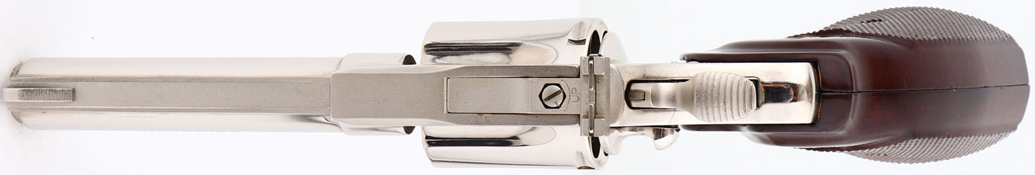 BOXED, Colt, Model Diamondback, (D5541) CAL: .38 SPL, MFG: 1978, SN: R06925, Double Action Revolver, 4'' barrel. The Colt Diamondback was introduced as a deluxe model in 1966, inspired by the successful Colt Python, in calibers of .22 LR, .22 WMR & .38 SPL. The Diamondback is built on the smaller ''D frame'', same as used in the Detective Special. It has a 6-shot swing-out cylinder & was available in blue or nickel finishes. Nickeled variations in the .38 like this one command 20% collectors premiums. It has a wide serrated target hammer, ventilated rib, fully adjustable target quality sights, & full-length barrel underlug. The left side of barrel is stamped ''DIAMONDBACK .38 SPECIAL CTG''. The Rampant Colt gold medallion, checkered walnut grips on this example are near mint. The high polish nickeled finish is mint. Bore is mint. The matte finished top of the ventilated rib barrel holds a screw height adjusting ''U'' notch rear sight & front blade sight. This gun comes in its original Colt wood grain box, with instruction manuals, hang tag, screw driver tool coin, bag wrapping. Highly collectible in this condition & desirable in nickeled variation. FFL Req. - Value: 2000 to 2500