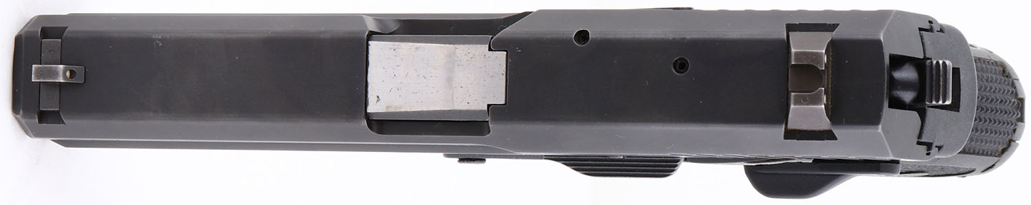 CASED Heckler & Koch, Model USP, CAL:40 S&W, MFG: Modern, SN: 22-4611, Semi-Auto Pistol, 4'' barrel. The polymer frame & grips are mint. The factory black metal finish on slide rates 98%. Bore is excellent. Universal mounting groves for mounting accessories. Ambidextrous mag release lever. Oversized trigger guard for use with gloves. Original sights. Comes in the original factory case, with additional factory 13 rd mag. FFL Req. - Value: 800 to 1200