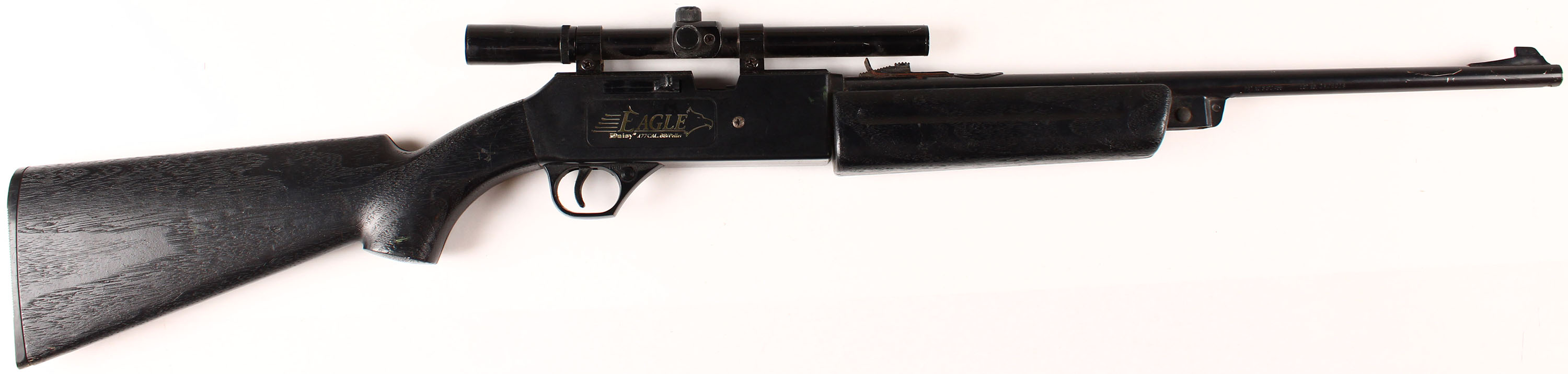 Daisy, Model Eagle, Caliber 177, Single Pump action, 20 1/4'' barrel, plastic stock & Daisy Powerline 4x15 Scope. Grade: Excellent + - Value: 10 to 30