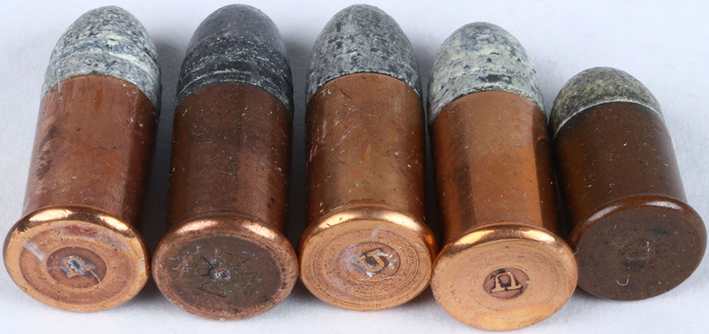 Lot of 5 SCARCE R/F (1.) H/S= (raised) ''U'' 32 extra short R/F, COP. CS. R.N.L. 1-GR. (3.) (raised) ''U'' 32 short R/F COP. CS., R.N.L. 2-KN. (1.) H/S= (IMP.) maltese cross, 32 short R/F. COP. CS. R.N.L. 2-KN. Grade: Excellent - Value: 60 to 100