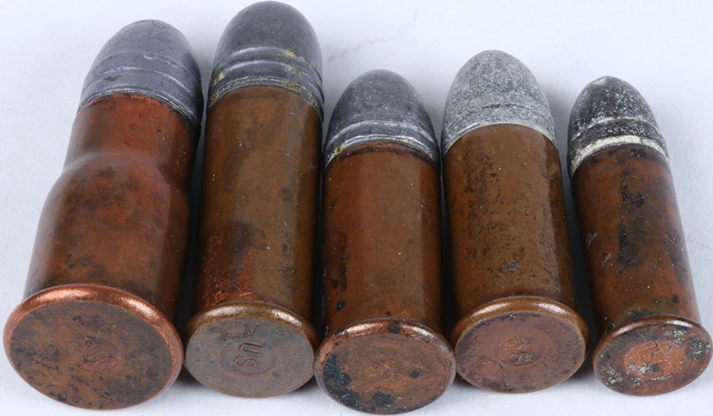 Lot of 5 R/F (1.) H/S= (raised) ''U.S. 56-46 Spencer F.N.L. 2-GR. (1.) H/S= (raised) ''U.S.'' 44 long bullard R.N.L. 3-GR. (2.) H/S= (raised) 44 short, R.N.L. 1-GR. (1.) H/S= (raised) 38 short, R.N.L. belted. Grade: Excellent - Value: 20 to 50