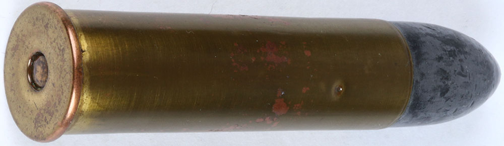 SCARCE N/H, 1'' Gatling, LRG. Oval BR. PRI. 3 3/4'' BR. CS., 3-punch crimps, conical LD. Grade: Very Good + - Value: 80 to 100