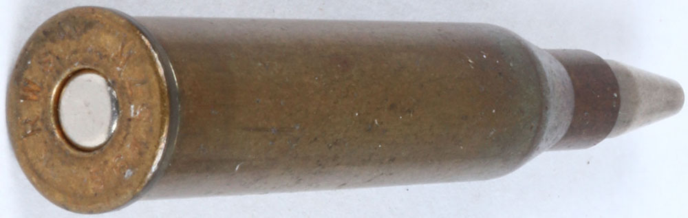 H/S= ''RWS 5.6 x 57 R'' flat nickel primer, FP. TIN PTD. -HP. Grade: Excellent - Value: 10 to 30