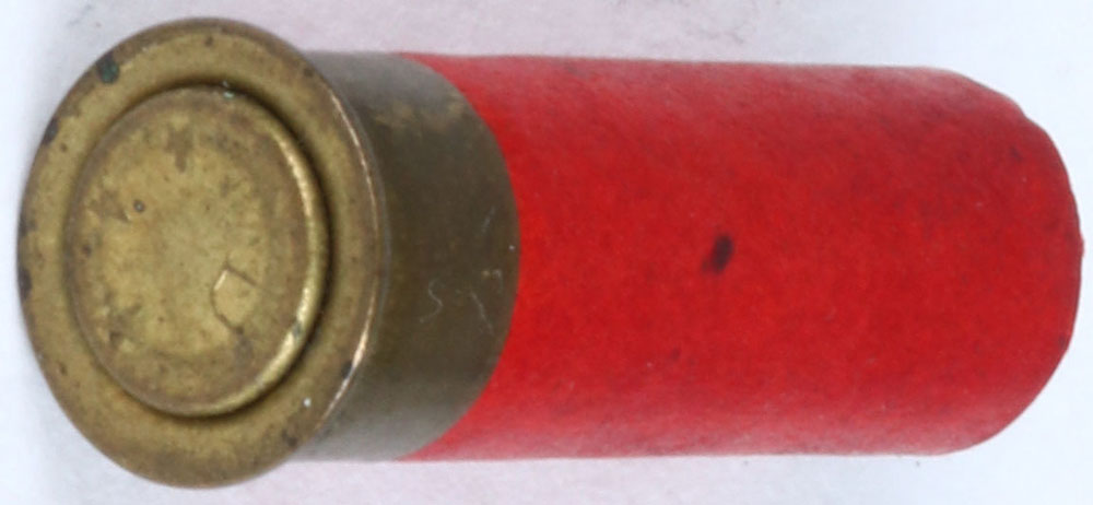 N/H 8mm label military practice blank, 20.0 mm red paper case, large flat brass primer ''D ***'' blank wad Grade: Excellent - Value: 10 to 30