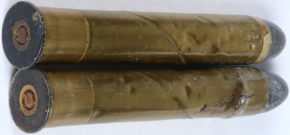 Lot of 2 B'T. variations N/H, 500 3'' coiled CS. BLK. Iron HD. Battery cup oval COP. PRI. P.P. R.N.L. COP. Tube EXP. N/H, 500 3'' coiled CS. BR. Base BLK. Iron HD., battery cup FLT. COP. PRI. R.N.L. COP. Tube 1-GR. Grade: Very Good - Value: 30 to 100