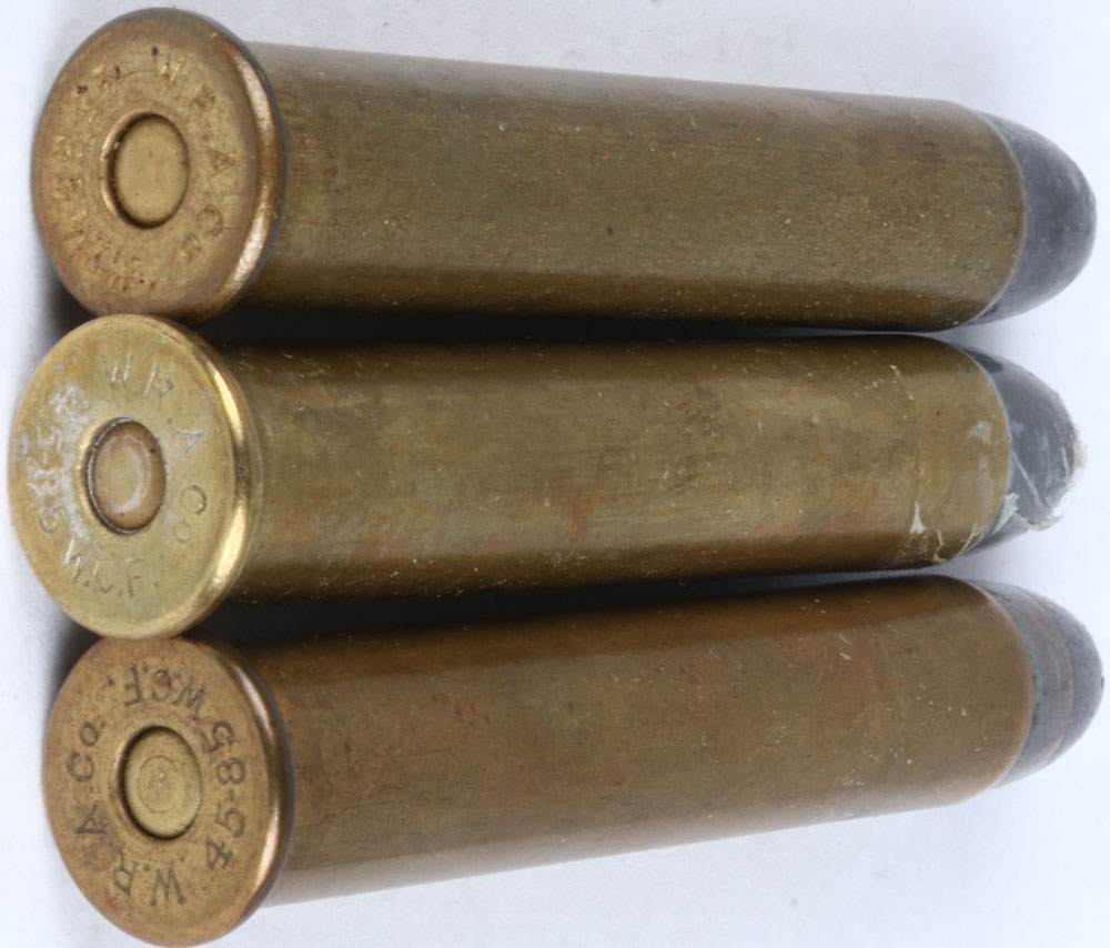 Lot of 3 H/S= ''W.R.A.CO. 45-85 W.C.F.'' oval BR. PRI., F.N.L. COP. Tube, express B'T. H/S= ''W.R.A.CO. 45-85 W.C.F.'' oval BR. PRI., F.N.L. H/S= ''W.R.A.CO. 45-85 W.C.F.'' BR. PRI. Gould pat. H.P. B'T., S.P. TIN F.N. H.P. Grade: Excellent + - Value: 30 to 100