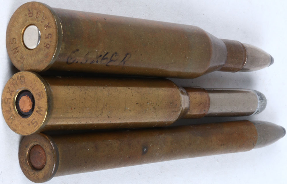 | Lot of 3 (1) H/S= ''RWS 6.5 x 58 R'' (sauer) flat nickel pri...