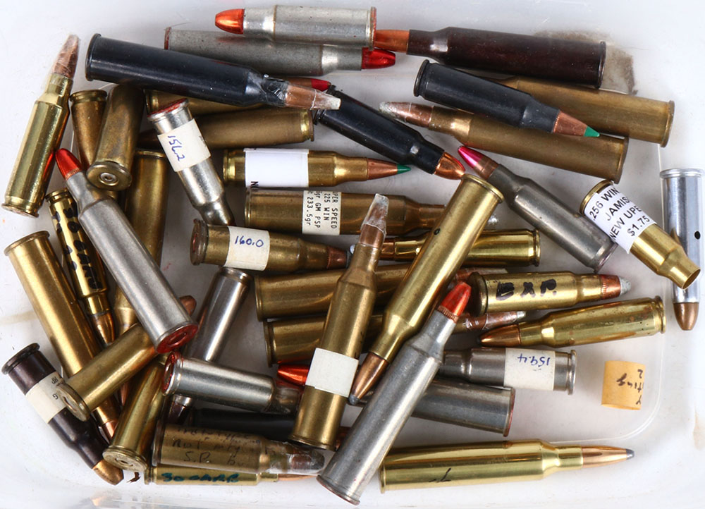 Lot of 45 (15.) 256 WIN, MAG, mix of H/S & variations all diff. TIN proof's, function dummies, sales dummies, SPL. Loads. ECT. (17.) 225 WIN., mix of H/S, all diff variations, TIN CS. Proofs BLK. CS. Function dummies, SPL. Loads ECT. (13.) 221 REM. Fire ball, mix of H/S & variations all diff. BLK. CS. Function dummy, TIN CS. Proofs, SPL. Loads ECT. Grade: Excellent - Value: 10 to 40